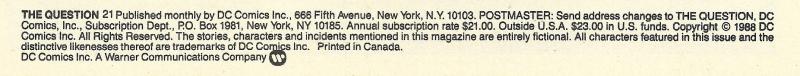 The Question [Vic Sage]; Aristotle Rodor (guest); Izzy O'Toole (guest); Junior Musto (villain); Benno Musto (villain, death)