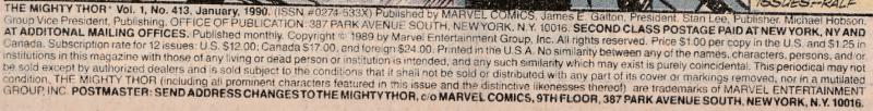 the Black Knight [Dane Whitman] (flashback); Doctor Strange; the Earth Force [Earth-Lord; Skyhawk; Wind-Warrior] (flashback); Grog (flashback); Hercules [Harry Cleese]; Hogun (flashback); Jackie Lukus; Kevin Masterson; Loki; Odin (flashback); Seth [also as the Serpent God of Death] (flashback); Surtur (flashback); Susan; Thor [Eric Masterson]; Ulik; Wong