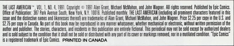 Indicia Publisher: Epic Comics