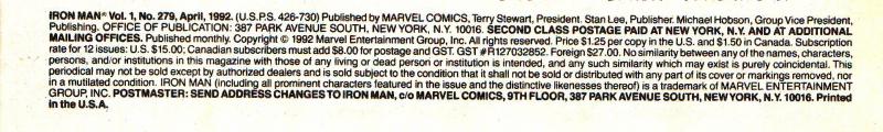 Issue: Iron Man #279
