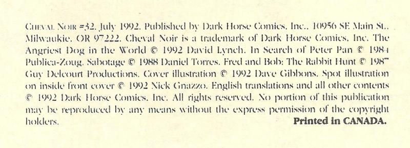 Indicia Publisher: Dark Horse Comics Inc.
