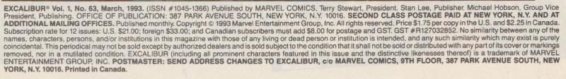 Excalibur [Captain Britain [Brian Braddock]; Meggan; Phoenix [Rachel Summers]; Kitty Pryde [Shadowcat]; Nightcrawler; Kylun; Cerise]; Micromax; Alistaire Stewart; Death; Nigel Orpington-Smythe (villain); Warpies (villain); Resource Control Executive (villain); Necrom (dream, cameo); Sa'tneen (dream, cameo)