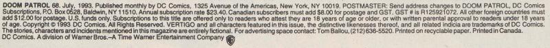 The Master Cleaner is kidnapping and killing people and the Identity Addict warns the Doom Patrol of him. The Bandage People has set up a 900 number business.