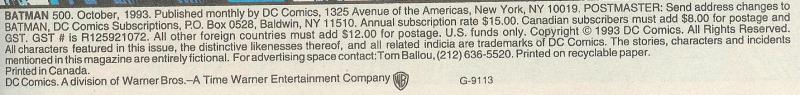 Cover art is an homage to the cover of Detective Comics (DC, 1937 series) #664 (late July 1993).
