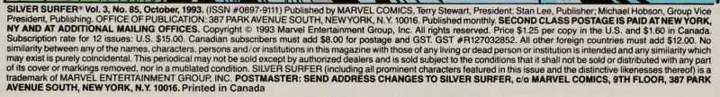 The Surfer crashes down on Paradise Omega where he is forced to fight Wonder Man and Storm.