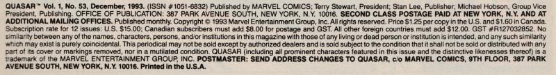 Quasar [Wendell Vaughn]; Kayla Ballantine; Dr. Pons Indenbaum; Squadron Supreme [Moonglow; Whizzer; Shape; Doctor Spectrum; Haywire; Power Princess; Skylark; Hyperion]; Dr. Myron Wilburn; Blue Shield; Infinity Watch [Adam Warlock; Moondragon]; Maelstrom; Thanos; Eon; Infinity; Eternity; Starblasters [Skeletron; Insidio; Fabrikant]