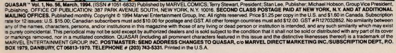 Quasar [Wendell Vaughn]; Watcher [Uatu]; Stranger; Starblasters [Skeletron; Nygorn; Insidio; Skar; Codabac]; Metallurge; Nightmask; Justice; Overshadow; All-American; D.P. 7 [Captain Manhattan; Chrome]; Psi-Hawk; Pit Bull; Kayla Ballantine; Vanguard; Darkstar; Ikaris; Perun; Binary [Carol Danvers]; Captain Marvel [Monica Rambeau]; Solar Wind; Moondancer; Voyager; Black Bolt; Lockjaw