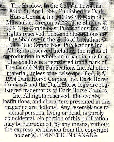 The Shadow: In the Coils of Leviathan #[nn] published October 1994