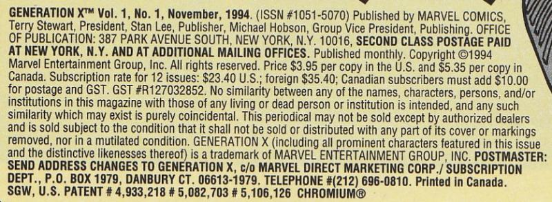 X-Men: Origin of Generation X #[nn] [1st Printing] published January 1996