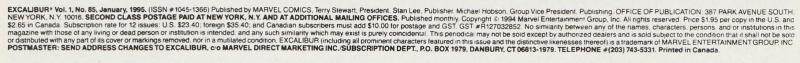 Shrill; Excalibur [Kitty Pryde [Shadowcat]; Nightcrawler; Day Tripper [Amanda Sefton]; Britanic [Brian Braddock]; Meggan; Gravemoss [Nightcrawler]]; Wolverine (Flashback); Professor X; Moira MacTaggert; Margali; Colossus (cameo)