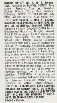 Generation X [Banshee; Emma Frost [White Queen]; M; Synch; Husk; Skin; Jubilee; Chamber]; Penance; Mondo (cameo); Cordelia Frost (cameo); Nanny (cameo); Orphan Maker (cameo)