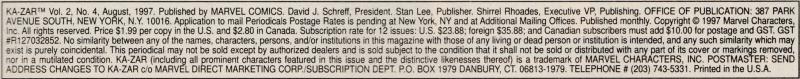 Ka-Zar, followed by Shanna, travels to New York City to find out why his brother tried to have him killed.