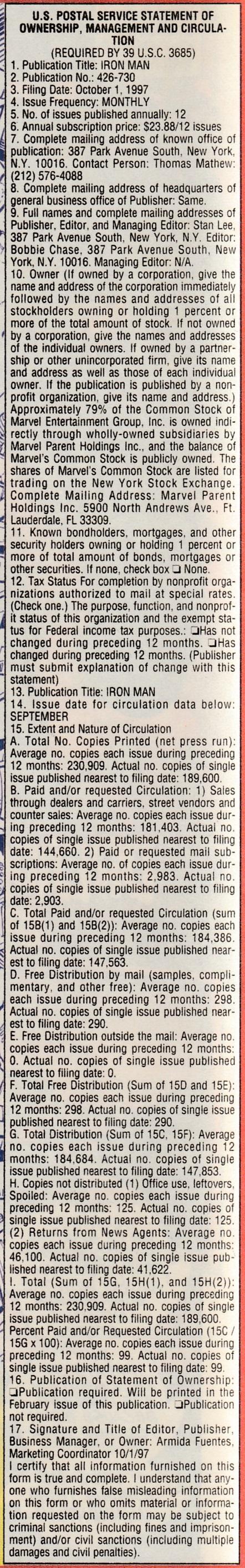 Indicia Publisher: Marvel Comics
