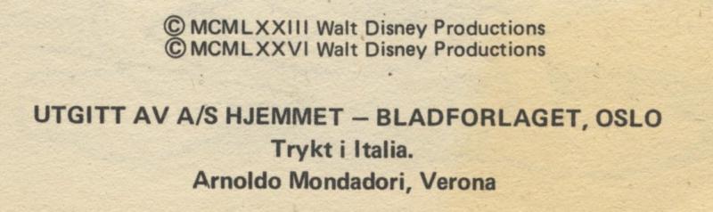 Disclose Notes: Trykk: Arnoldo Mondadori, Verona, Italia. Salgsdato basert på annonse i Donald Duck & Co #10/1976.