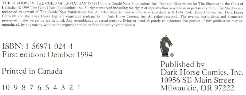 The Shadow: In the Coils of Leviathan #4 published April 1994