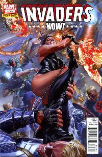 Invaders [Steve Rogers; Captain America [James Buchanan Barnes]; Human Torch [Jim Hammond]; Toro [Thomas Raymond]; Union Jack [Joseph Chapman]; Spitfire [Jacqueline Falsworth]; Namor the Sub-Mariner]; Vision [Aarkus]; Warrior Woman; Master Man; Iron Cross; U-Man [Meranno]