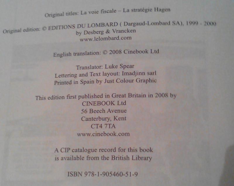 Original edition: © EDITIONS DU LOMBARD (Dargaud-Lombard SA), 1999-2000