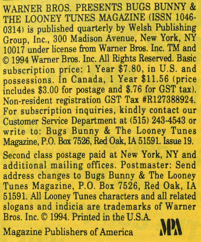 Issue: Warner Bros. Presents Bugs Bunny & the Looney Tunes Magazine #19