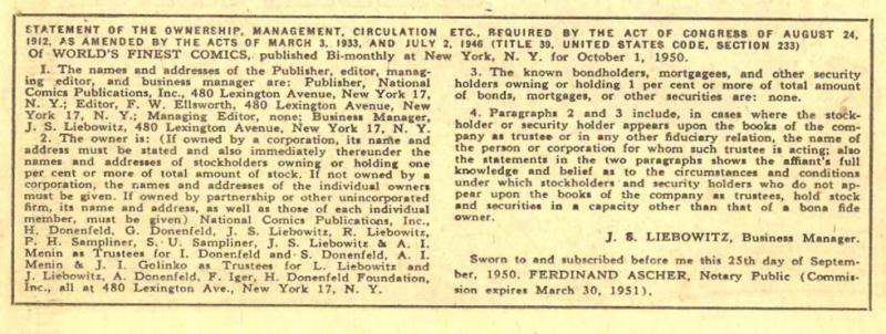 Pencil credit verified by Dick Sprang. Letters credit from Todd Klein via his Klein Letters blog (19 September 2016, http://kleinletters.com/Blog/ira-schnapp-in-worlds-finest-comics-part-2/).
