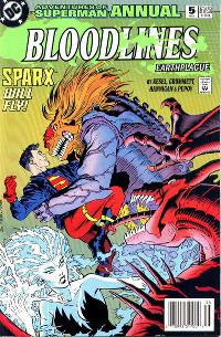 Superboy is recovering in the hospital when Maggie Sawyer recruits him to help track down the Bloodlines aliens. The aliens have secretly set up in a building and started a cult to attract food. Meanwhile, D.C. Force and her Uncle Harry have arrived in town. They are from a family of super-heroes, and it's time for D.C. to get her powers. In the battle with the aliens, D.C. is bitten, transforming her into Sparx. Sparx and Superboy run off the aliens.