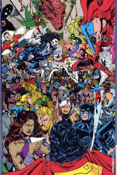 Warrior [Guy Gardner]; Ambush Bug; Anima; Animus; Ape [Sam Simeon]; Aquaman [Arthur Curry; Orin]; Aqualad [Garth]; Arion; Arsenal [Roy Harper]; Terra [Tara Markov]; Darkstar [Donna Troy]; Artemis; Nuklon [Albert Rothstein]; Obsidian [Todd Rice]; Atom [Ray Palmer]; Batman [Bruce Wayne]; Big Barda; Black Canary [Dinah Laurel Lance]; Black Condor [Ryan Kendall]; Black Thorn [Elizabeth Thorne]; Blue Devil [Daniel Cassidy]; Brainiac 5 [Querl Dox]; Captain Atom [Nathaniel Adam]; Captain Marvel [Billy Batson]; Cat Grant; Cave Carson; Congo Bill; Damage [Grant Emerson]; Detective Chimp [Bobo]; Dolphin; El Diablo [Rafael Sandoval]; Fastbak; Fate [Jared Stevens]; Flamebird [Bette Kane]; Flash [Jay Garrick]; General Glory [Donovan Wallace]; Green Arrow [Connor Hawke]; Geo-Force [Brion Markov]; Green Lantern [Kyle Rayner]; Gunfire [Andrew Van Horn]; Hawkman [Katar Hol]; Impulse [Bart Allen]; Jade [Jennie-Lynn Hayden]; Ballistic [Kelvin Mao]; Geist [Dwayne Geyer]; Loria; Mongrel [Josh Xan]; Razorsharp [Rae Sharp]; Sparx; Nightblade [Nik Mayak]; Jimmy Olsen; Judomaster; Katana [Tatsu Yamashiro]; Technocrat; Metal Men [Lead; Mercury; Platinum; Veridium [Will Magnus]]; Lightray; Lobo; Lois Lane; Superman [Clark Kent; Kal-El]; Loose Cannon [Eddie Walker]; Forever People [Mark Moonrider; Big Bear; Beautiful Dreamer; Serifan; Infinity Man]; Maya [Chandi Gupta]; Martian Manhunter [J'onn J'onzz]; Mirage [Miriam Delgado]; Mr. Miracle [Scott Free]; Nightshade [Eve Eden]; Oberon; Orion; Pantha [X-24]; Phantom Lady [Dee Tyler]; Pied Piper [Hartley Rathaway]; Plastic Man [Eel O'Brian]; Question [Vic Sage]; Rex the Wonder Dog; Rocket Red [Dmitri Pushkin]; Sea Devils [Dane Dorrance; Judy Walton; Nicky Walton]; Sentinel [Alan Scott]; Stanley's Monster; Steel [John Henry Irons]; Hero Hotline [Stretch [Thomas Longacre]; Microwave Mom [Belle Jackson]; Hotshot [Billy Lefferts]; Private Eyes [Lester Lee]]; Superboy; Supergirl [Matrix; Linda Danvers]; Thunderbolt [Peter Cannon]; Challengers of the Unknown [Ace Morgan; Red Ryan; Rocky Davis]; Wildcat [Ted Grant]; Lady Blackhawk [Zinda Blake]; Batmite; Buck Wargo; Joey Hong; Rita Muldoon; Tiger-Man [Desmond Carr]; Veronna; Arisia; Amon Hakk; Davroth Catto; Lyrl Dox; John Constantine; Zatanna Zatara; Swamp Thing; Robotman [Cliff Steele]; Bruce Willis; Arnold Schwarzenegger; Sylvester Stallone; Darkseid (villain); DeSaad (villain); Mad Hatter [Jervis Tetch] (villain); Pamela Isley [Poison Ivy] (villain); Edward Nigma [Riddler] (villain); Jonathan Crane [Scarecrow] (villain); Harvey Dent [Two-Face] (villain); Arnold Wesker [Ventriloquist] (villain); Goldface [Keith Kenyon] (villain); Bane (villain); Dementor (villain); three Kraggz (villains)