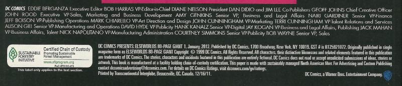 Metallo Kent kills Brainiac Lincoln, Wonder Woman robs for her adoptive father Luthor, Batman is an underwater hero, The Golden-Age Teen Titans, Darkseid rejected by the LSH, Grodd Columbus invades Flash's Central America, Metal Men fight for the French Revolution, Batman as Adam in the Garden of Eden.