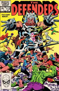 The Defenders [Dr. Strange; Valkyrie [Brunnhilde]; Silver Surfer; Sub-Mariner; Nighthawk [Kyle Richmond]; Gargoyle; Hulk [Bruce Banner]; Hellstrom; Beast; Vision; Scarlet Witch]; Squadron Supreme [Kyle Richmond [Nighthawk; President] (death); Hyperion; Lady Lark [Linda Lewis]; Power Princess [Zarda]; Nuke [Albert Gaines]; Cap'N Hawk [James Dore]; Amphibian [Kingsley Rice]; The Golden Archer [Wyatt McDonald]; Tom Thumb [Thomas Thompson]; Doctor Spectrum [Joe Ledger]; The Whizzer [Stanley Stewart]; Arcanna [Arcanna Jones]]; Over-Mind; Null the Living Darkness; August Masters; Mindy-Psi