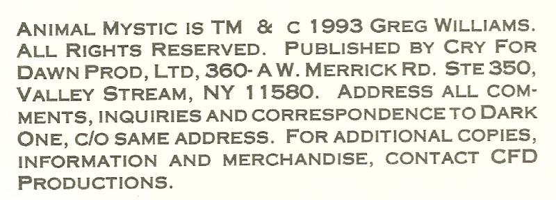 Credits and indicia page with half page illustration on inside front cover.