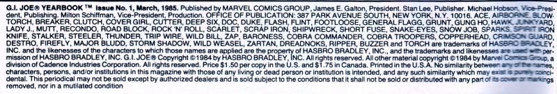 G.I. Joe [Hawk; Snake-Eyes; Scarlett; Breaker; Flash; Grunt; Stalker; Short-Fuse; Grand-Slam; Zap; Rock 'N Roll; Steeler; Clutch]; General Flagg; General Austin; Doctor Adele Burkhart; Cobra Commander (villain); Baroness (villain)