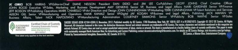 Suicide Squad [also as Task Force X; Black Spider [Eric]; Deadshot [Floyd Lawton]; El Diablo [Chato Santana]; Harley Quinn [Harleen Quinzel]; Iceberg; King Shark]; Amanda Waller